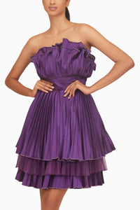 This stunning pre-pleated cabbage dress is made from luxurious taffeta, beautifully enhanced with pearls along the edges for an added touch of elegance and sophistication. Its intricate pleating and pearl details make it a standout piece for any occasion.