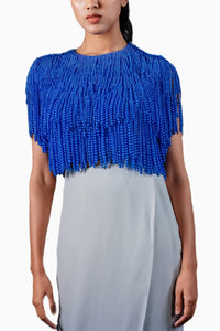 Featuring a pearl fringe lime green blouse, this piece is crafted from airy tulle and meticulously handcrafted with pearls of various sizes. The blouse's vibrant lime green hue is beautifully complemented by the intricate pearl fringe detailing, which adds a touch of luxurious texture and elegance. Each pearl is thoughtfully placed to create a dynamic and eye-catching effect, making this blouse a standout choice for those seeking to add a sophisticated and unique element to their wardrobe.