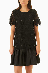 Pearl Studded Black Lace Shift Dress