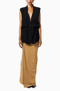 Our draped Pecan Skirt is made in jersey that sits perfectly on a body. It features gathered details with contrasting handcrafted tassels to add a glam. Designed with an asymmetrical waistband, a slit at the hem, and a concealed side zipper, it's perfect for a night out.