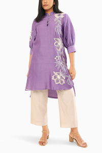 Fabric- Chanderi Silk Color- Lilac Details- Thread and 3D Applique Work Fit- Regular Fit Components- 2 Product Code- SVEORIGWF-24-10CO