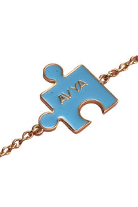 Baby puzzle (15.5 mm) personalised name in turquoise enamel chain bracelet in 14KT yellow gold are featured from our Raksha Bandhan collection to Celebrate the eternal bond of love and protection this with our exquisite Fine Jewellery Rakhi Collection. Each piece is intricately crafted with love and care, making them the perfect tokens of affection for this special occasion.