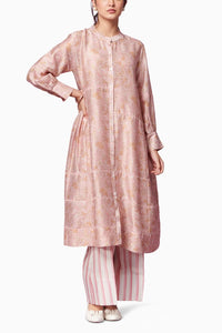 Composition- Pure Chanderi Silk with Cotton Inner Color- Pink Fit- Kurta- True Fit Trouser- Relaxed Fit Components- 3 Product Code- SVEMOHRSS24PBK1PRT1