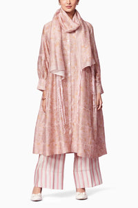 Composition- Pure Chanderi Silk with Cotton Inner Color- Pink Fit- Kurta- True Fit Trouser- Relaxed Fit Components- 4 Product Code- SVEMOHRSS24PBK1PRT1PBRS1