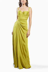 Fabric- Chinon Color- Kiwi Green Embroidery- No Embroidery Fit- -Fits True To Size. -Model Height: 5' 9 and is wearing Size “8”. -Garment Full Length: 63" -Designed for a contoured fit at the bust, snatched look at the waist & a draped skirt under. Components-1 Product code- SVEBRINSY15BS23
