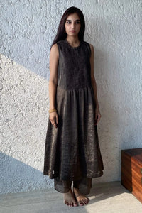 Composition: Sheer Metallic Silk & Cotton Slip Color: Pewter Fit: Relaxed Fit Components: 2 (Dress & Slip) Length: 45" Product Code: SVEKISHKMSF254/SCRDR/PEW