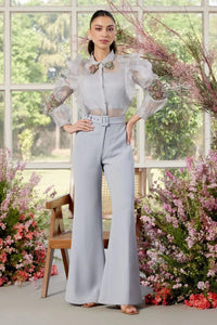 Composition: Shirt - Pure Silk Organza,Skirt - Italian Crepe , Inner - Italian Crepe Color: Blue Detailing: Ice Blue Shirt And Pants Set Components: 3 Product Code: SVEPARUSS24TP00EAQ