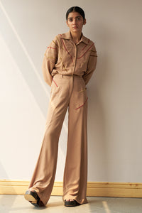 Composition- 40% Viscose, 55% Polyester and 5% Spandex Color- Brown Fit- Easy/Relaxed Components- 2 Product Code- SVESOMYASGS19LFW22&SGTR20LFW22