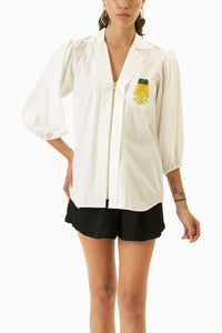 This white shirt from Trisara boasts an edgy sequined pineapple embroidered on its pocket. Tailored in 100% cotton shirt with a front opening zipper.