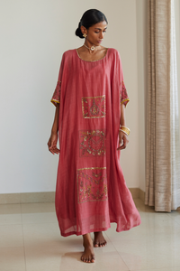 Featuring Pink Akaari Kaftaan by Sarang Kaur by Akaari Collection. This Chanderi silk kaftaan with a cotton undershirt exudes charm in a soft pink hue. Perfect for adding grace to any occasion, it blends comfort with elegant sophistication effortlessly.