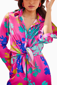 Featuring the Pink Alyssa Co-ord Set from Sttavoss's Everbloom Collection. Crafted from luxurious satin with an all-over print, this set offers a soft and indulgent feel. With its elegant drape and comfortable fit, it transitions effortlessly from morning to night, making it a stunning choice for any occasion.