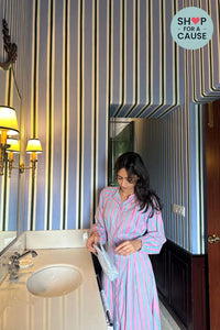 Fabric - 100% Cotton Color - Pink & Blue Stripes Components - 1 Product Code - SVETPDKFSS25012