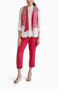 Elevate your style with our Pink and White Embellished Coord Set. The shirt is crafted from Georgette and Paired with Embellished Parsi Jacket made in Georgette, goes well with pink contrast bead spread pants. It offers a comfortable fit and a chic, versatile ensemble.