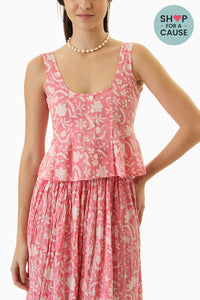 Our Bundi Top is designed using hand block printed cotton fabric. It is a sleeveless top with an elasticated center at the back for a fitted silhouette. It is the perfect pick for a chic summer look.