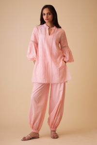 Featuring soft, breathable cotton voile, the Cecile tunic is beautifully detailed with intricate floral lace cutwork and elevated pintucks, complemented by unique lace designs. Paired with our Cotton harem pants with lace detailing for a perfectly coordinated look.
