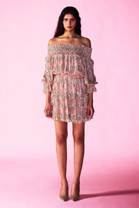 Turn heads in our pink sequined off-shoulder dress with chevron detailing! With its mix of chic elegance and vibrant sparkle, this dress is perfect for a girls' night out that’s both memorable and fabulous.