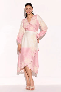 Featuring the Como Ombre Wrap Dress by Bohochic's Palmera Collection. Flattering and elegant, this dress is crafted from premium ombre linen fabric and adorned with exquisite embroidery, offering a timeless and sophisticated look.