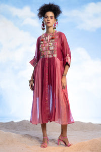 Indulge in the exquisite charm of this Dress. With an open front and gathered details, this dress exudes elegance & sophistication. The embroidery on the yoke adds a touch of artistry, while the included inner layer ensures comfort & versatility.