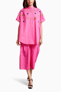 Pink Embroidered Oversized Co-ord Set