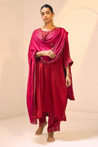 Featuring Pink Isha Dupatta by Sarang Kaur from Seerat Collection. Crafted from satin georgette, showcases elegant embroidery in a soft pink hue. This beautifully detailed dupatta adds a sophisticated touch to any outfit, enhancing your ensemble with its delicate charm.