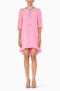 SHA Pink Kaftan Style Dress by Shasha Gaba brings effortless grace to the pret collection. Crafted in soft viscose crepe, this regular-fit Indowestern silhouette drapes beautifully, offering breezy comfort, fluid movement, and a refined contemporary look perfect for versatile day-to-evening styling.