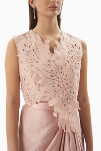 Featuring the Pink Leaf Applique Blouse by Renasci from the Untamed Collection. Crafted in Banana Crepe with exquisite applique patches, this fitted piece in pretty pink embraces elegance effortlessly.