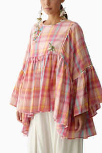 Pink Madras Checks Frill Top