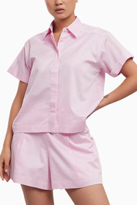 Elevate your wardrobe with this elegant crop shirt set, crafted from ultra-soft Pima cotton. The relaxed-fit crop shirt features a classic collar, full sleeves. Paired with comfortable elastic-waist shorts with side pockets, this set effortlessly blends luxury with ease.