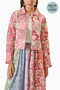 Featuring the Pink Patchwork Quilted Jacket by The PDKF Store. Crafted from upcycled hand block printed cotton, this oversized jacket offers long sleeves and unique, varied print placements, ensuring a distinctive piece with every wear.