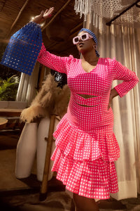 Introducing the chic dress featuring stylish cuts on the stomach and asymmetrical frill layers at the bottom. This contemporary design adds a unique flair while ensuring a flattering fit. Perfect for those looking to make a bold statement at any event!