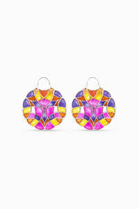 Featuring Pink Polychrome Hoops by Manner India. These 60 mm polychrome super hoop earrings with a touch of mystic spheres are handcrafted in 92.5% silver, and have an anti-tarnish protective coating. These earrings have transparent enamel details in vibrant colors & have an ear wire lock which is super easy to wear.
