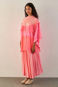 A freesize top, layered in pink silk and chiffon, featuring our signature shibori detail around the neckline.