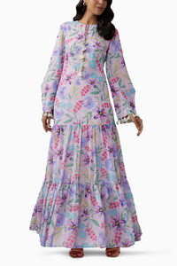 Introducing the pink printed art georgette tiered dress, a playful yet sophisticated addition to your wardrobe. Crafted from airy Art Georgette fabric, this dress features a soft pink hue adorned with a delicate print that adds charm and femininity. The tiered design enhances movement, creating a flowing silhouette that’s both flattering and comfortable.