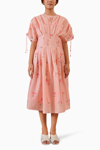 The Pink Scarlett Digital Print Box Pleated Dress and Slip is a stunning ensemble crafted from luxurious Silk Chanderi fabric. Its intricate digital print adds a touch of elegance, while the box pleated design offers a flattering silhouette.