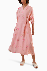 Step into timeless elegance with our Pink Scarlett Digital Print Side String Dress and Slip, expertly crafted in linen. Embrace sophistication with its intricate digital print design and flattering side string detailing, perfect for any occasion.