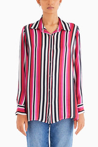 A contemporary shirt top in Stripe print. Easy and elegant. This shirt can be worn with our Black straight satin silk pants, or can be worn separately. Perfect for days and relaxed evening.