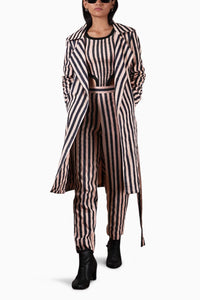 Pink With Charcoal Block Printed Striped Trench and Bodysuit Set