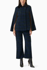 Plaid Tweed Fur Trimmed Cape Co-ord Set