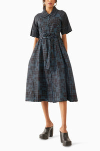 Plume dress with print pair of Domino and Lanes, a below the knee A-line fit dress with raglan sleeves featuring complimenting print combination, crafted in cotton satin, secured at the front with fabric buttons. With its flattering fit and stylish design, this dress is perfect for making a statement at any occasion.