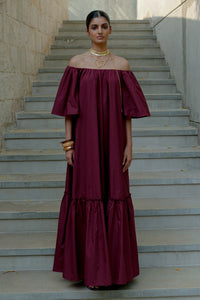The poise dress is an off-shoulder, flowy silhouette with bell sleeves and a gathered hem. Its relaxed shape flatters all body types, making it ideal for concealing the tummy and suitable for maternity wear too. Crafted in breathable BCI cotton poplin, it’s perfect for easy, elegant dressing.