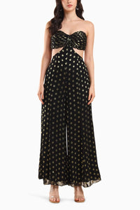 Carefree and lively is the handwriting of this polka dotted sweetheart tube jumpsuit. It features ruching at the top and alluring cut outs at waist bringing out the best of your sihouette.