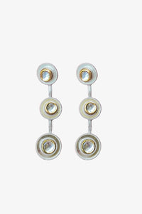 The Polki 3 Dot Earrings showcase a delicate triple-dot design embellished with shimmering Polki stones. Crafted from copper and brass with a silver finish enhanced by 22k gold and white rhodium, these elegant studs bring subtle sparkle and refined charm to any look.