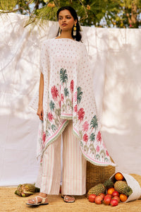 A statement in movement and form, our signature pleated long cape is designed to captivate. Featuring an engineered print story in vibrant hues, it drapes effortlessly, creating a silhouette that is both striking and weightless. Universally flattering, this piece blends drama with ease, making it the perfect layer for any ensemble—from jeans and skirts to lehengas and palazzos. Flowing, versatile, and unapologetically chic, this is the art of effortless dressing.