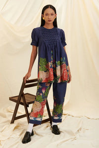 Embrace timeless elegance in our printed co-ord set, boasting adorable puff sleeves smocked at the edges and delicate smocked detail along the neckline. Drawing inspiration from floral elements, this enchanting ensemble showcases intricate placement prints meticulously crafted on both the top and bottom pieces, delivering a captivating blend of heritage and modern style.