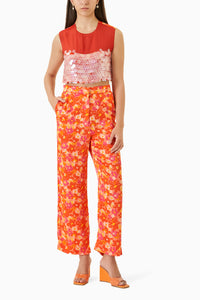 Composition - Vegan Silk Color - Red Floral Print Embroidery Details - Hand Embroidered, Swarovski, Ribs Product Code - SVERIGUSRT027