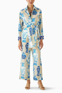 The Porcelain Knot Shirt & Trousers Co-ord crafted from our 100% cotton fabrication, trans-seasonal, is a statement piece. The Co-ord, made in our hand drawn Porcelain print inspired from the Ancient China, has a relaxed fit. With a hand embroidered cuff, the piece has front shell buttons and a knot on the waist. Featuring a summery look, it is paired with our Porcelain trousers with a waistband and pockets. Wear it with heels for an elegant look.ÂÂÂ