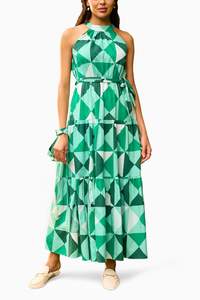 Our Porto Maxi Dress in our green and white Porto Print is the perfect option for just about any occasion. Adding a finish to this dress is a halter neck and belt.