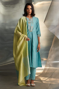 Powder Blue Chanderi Flowy Kurta Set