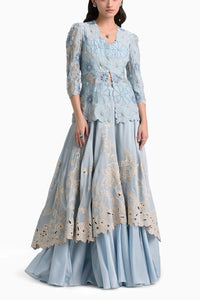 Powder Blue Cutwork Layered Lehenga Set
