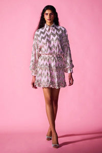 Powder Pink Chevron Sequin Collared Shirt Dress